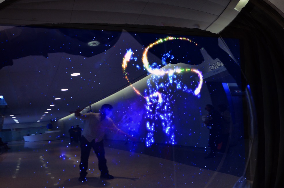 It is an installation that offers a space for creation, expression and introspection. It is as much of interest to the contemplative spectator as it is to the one who wishes to interact. The work can thus be contemplated as well as explored through interaction. One of the main objectives is to make children feel integrated and connected with the rest of the world so that they feel less alone and isolated. It proposes to interact with the stars, the universe, to create something beautiful and grandiose at the macrocosm scale. It encourages us to be more attentive to the correspondences between the external environment and the internal universe, to realize that we have the power to have a positive impact on the harmony of the microcosm, on our psyche, on our general state of well-being. Through the different modalities of interaction, it offers, the Interactive Musical Planetarium leads patients to be more attentive to their bodies, their posture, their positions and movements in space, their emotions and the relationships they have with others. Facial expressions, body postures and movements have a direct impact on our psyche: a smile, even a forced one, helps us feel better, and standing up straight, breathing deeply, gives us more confidence.